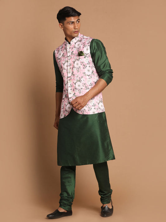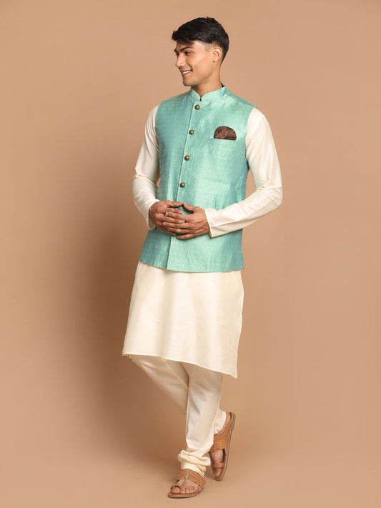 Men's Green Viscose Blend Straight Jacket Kurta and Pyjama Set