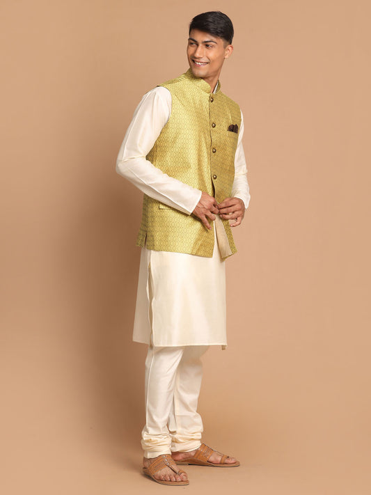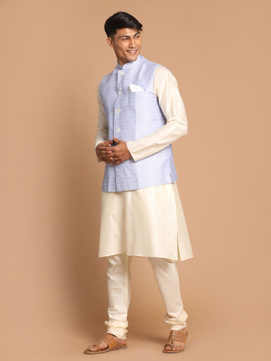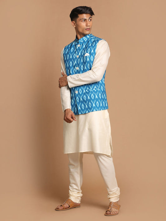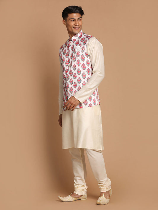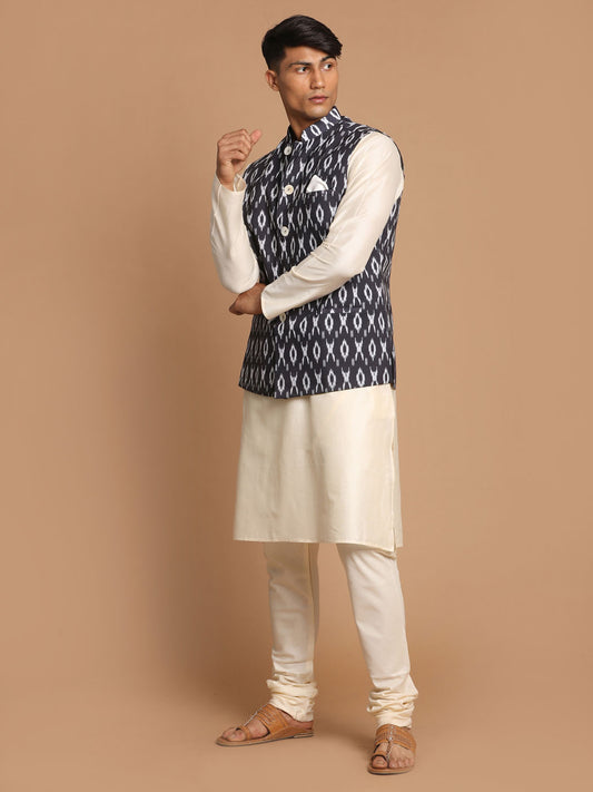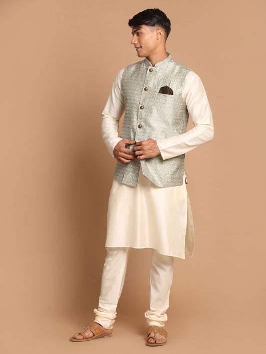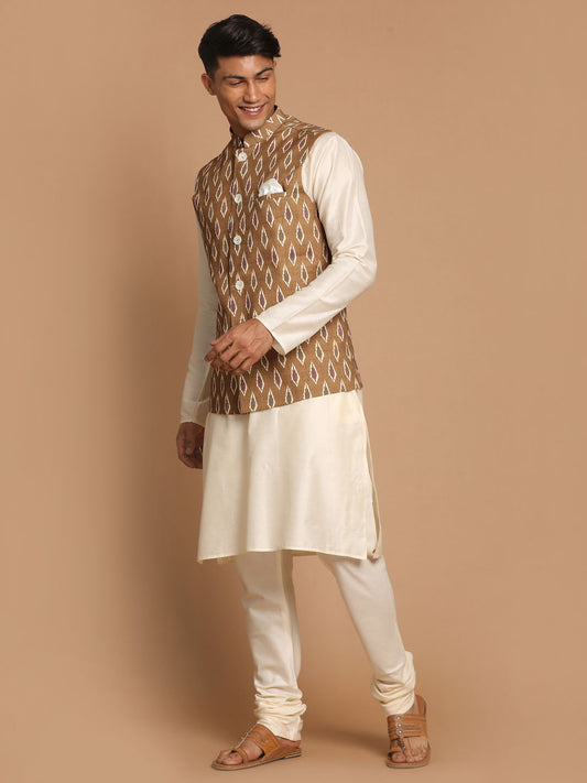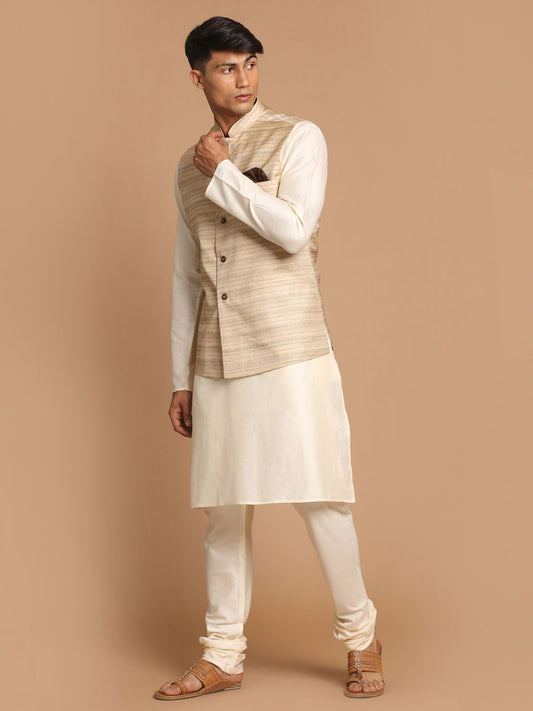 Men's Cream Viscose Straight Jacket Kurta and Pyjama Set