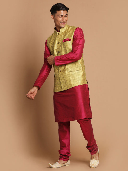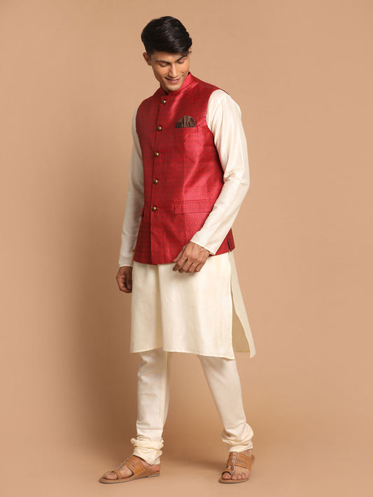 Men's Red Silk Blend Straight Kurta Pyjama Set