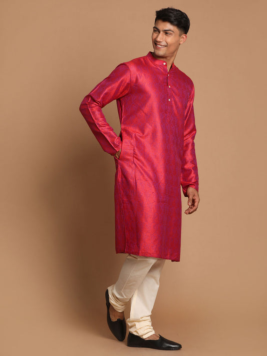 Men's Pink Viscose Straight Jacket Kurta and Pyjama Set