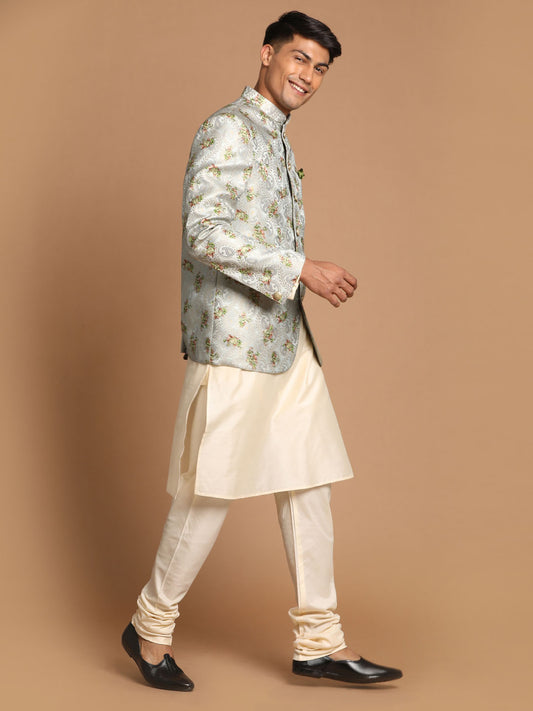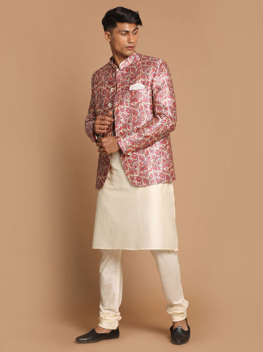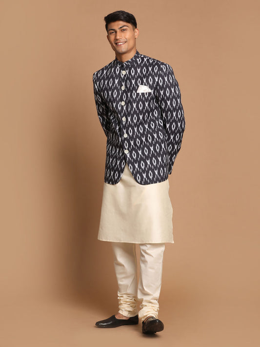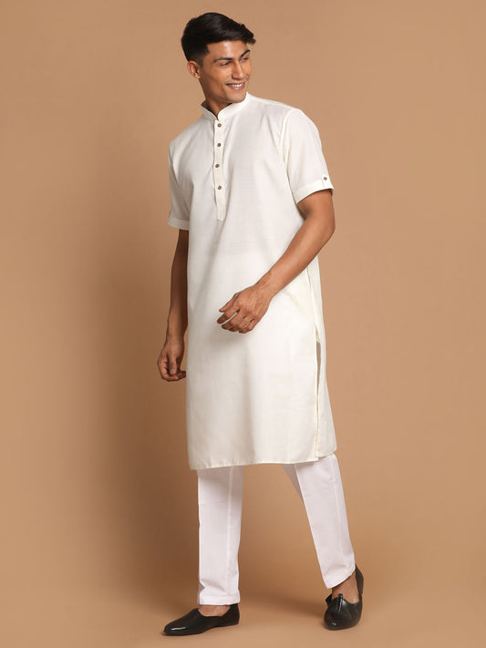 Men's Cream Viscose Straight Jacket Kurta and Pyjama Set