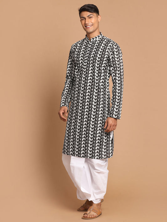 Men's Black Pure Cotton Straight Kurta and Dhoti Set