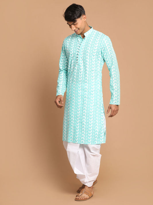 Men's Green Pure Cotton Straight Kurta and Dhoti Set
