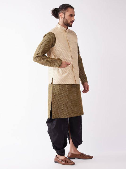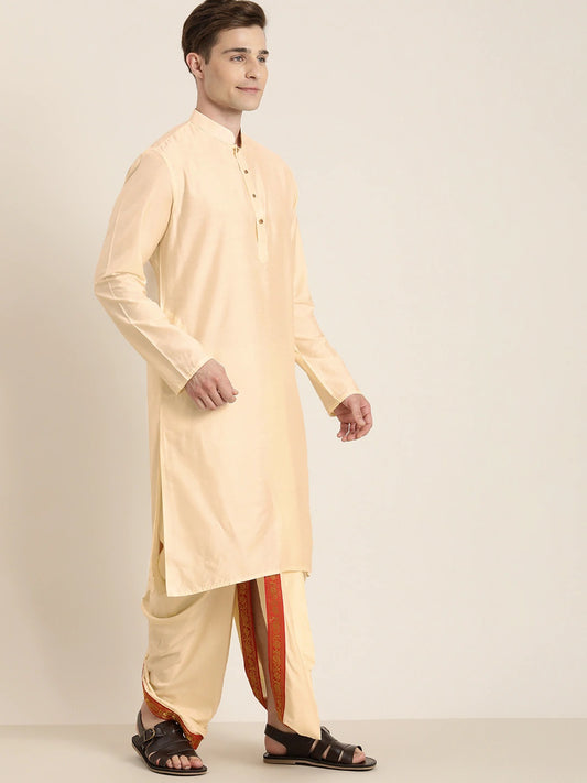 Men's Cream Viscose Straight Kurta Dhoti And Dupatta Set