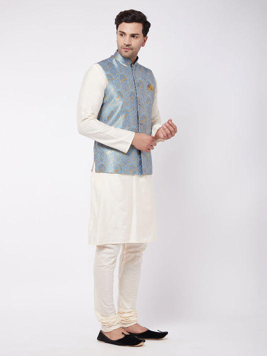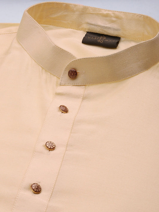 Men's Cream Viscose Straight Jacket Kurta and Pyjama Set