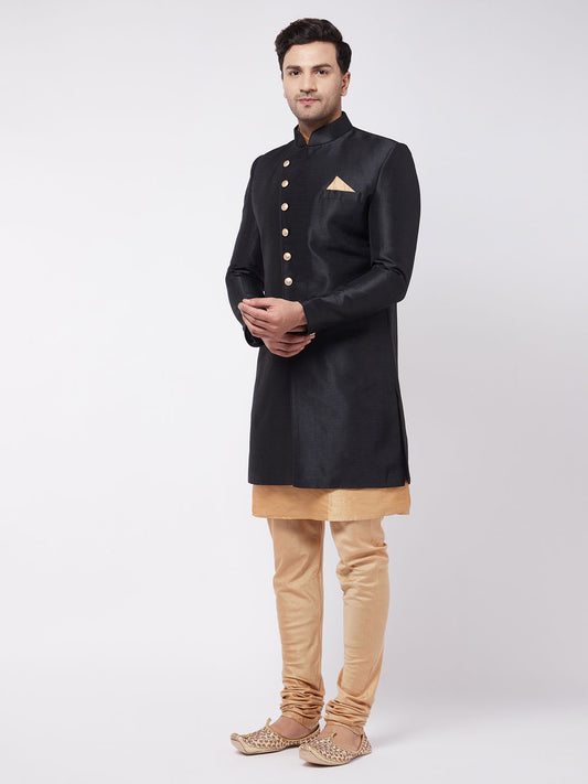 Men's Black Silk Blend Angrakha Sherwani Set