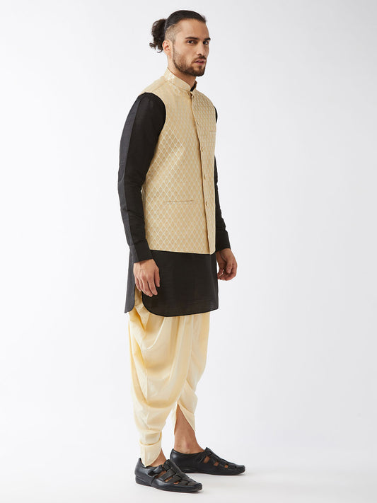 Men's Black Silk Blend Straight Jacket Kurta and Dhoti Set