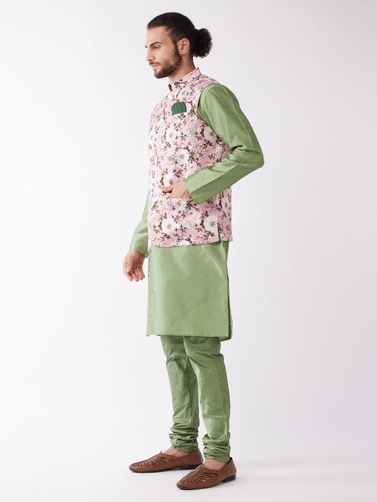 Men's Green Silk Blend Straight Jacket Kurta and Pyjama Set