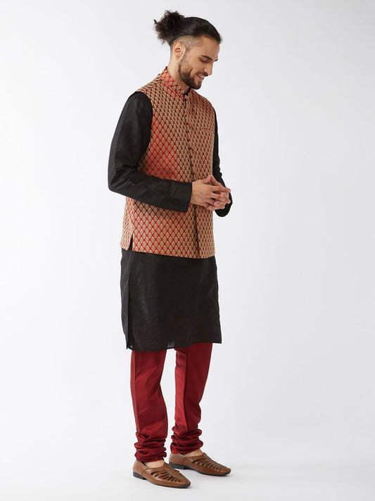 Men's Black Silk Blend Straight Jacket Kurta and Pyjama Set