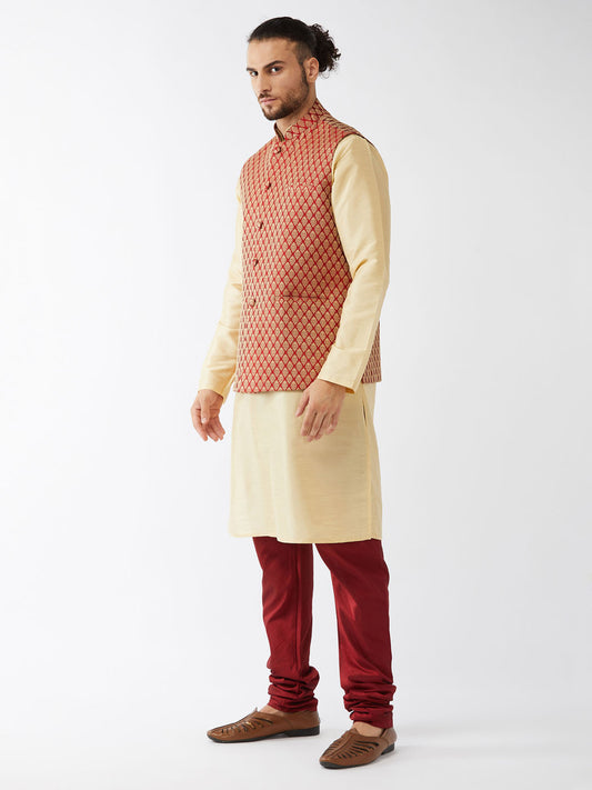 Men's Gold Silk Blend Straight Jacket Kurta and Pyjama Set