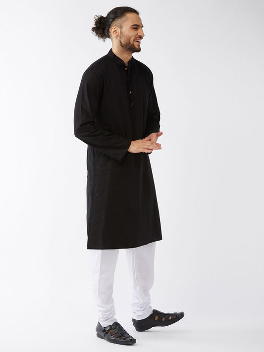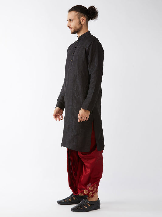 Men's Black Silk Blend Straight Kurta and Dhoti Set