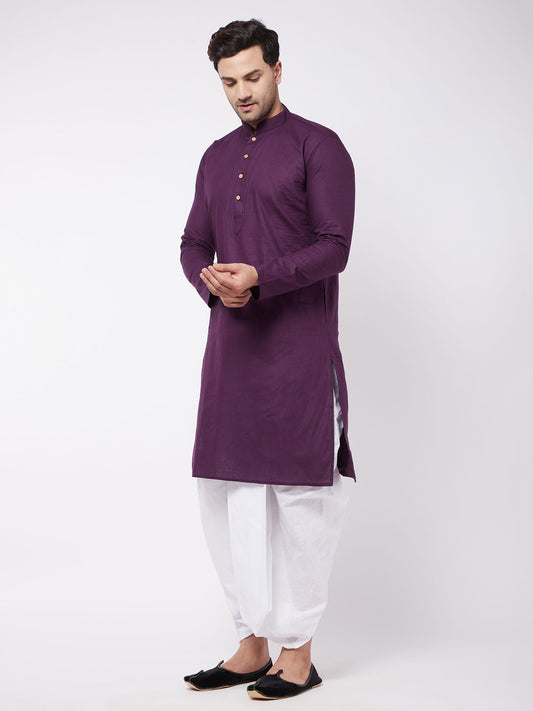 Men's Purple Cotton Blend Straight Kurta and Dhoti Set