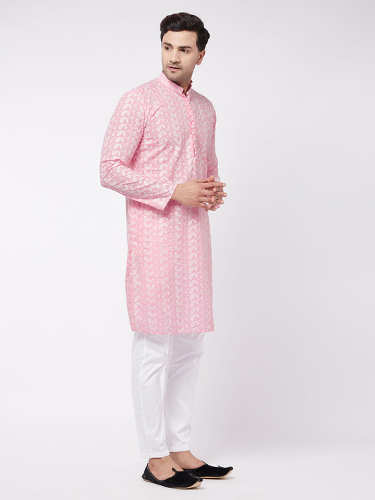 Men's Pink Pure Cotton Straight Kurta Pyjama Set