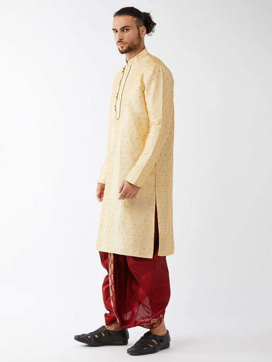 Men's Cream Silk Blend Straight Kurta and Dhoti Set