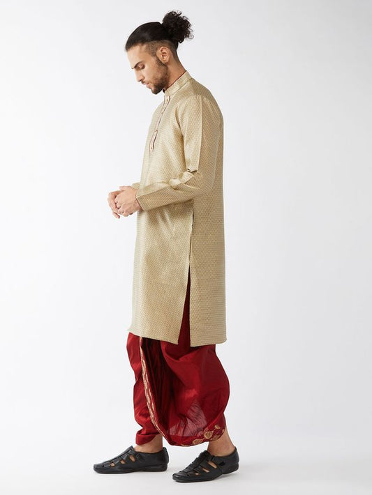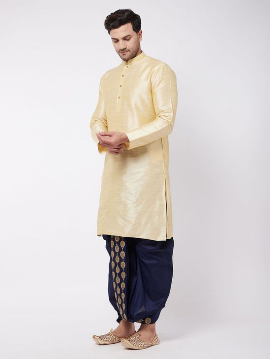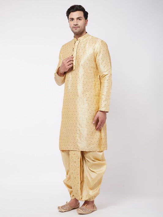 Men's Gold Silk Blend Straight Kurta and Dhoti Set