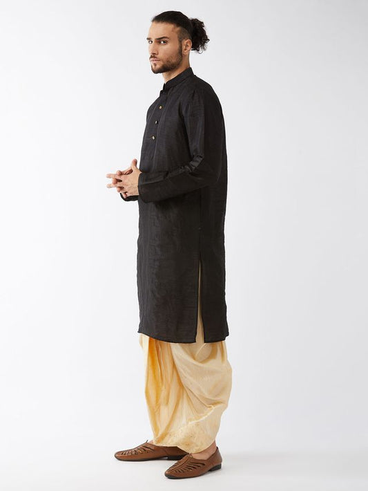Men's Black Silk Blend Straight Kurta and Dhoti Set