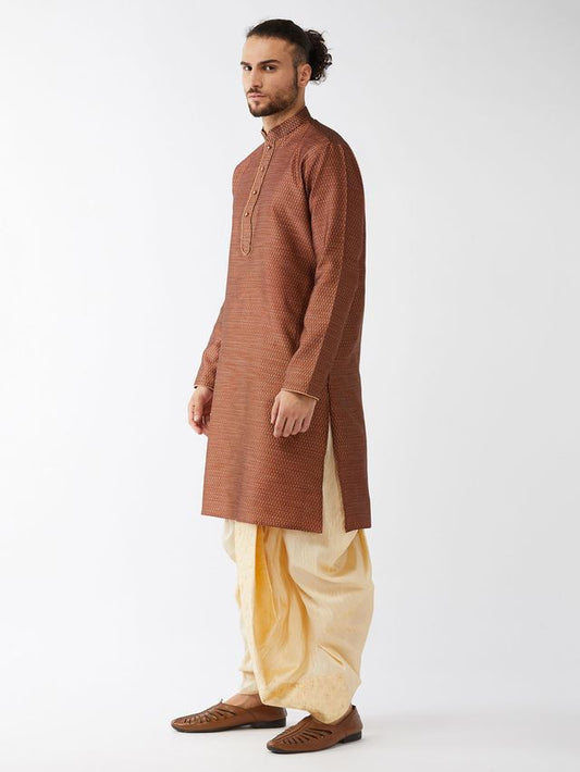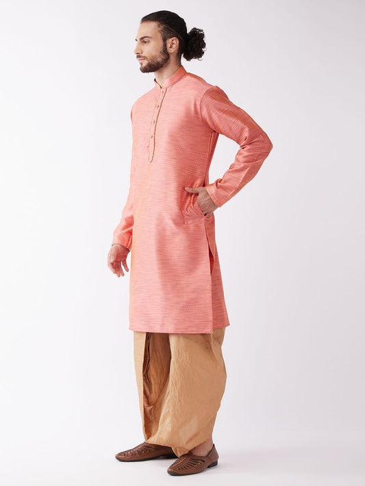 Men's Rose Gold Silk Blend Straight Jacket Kurta and Dhoti Set