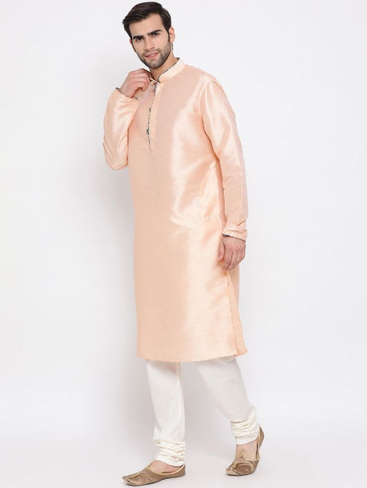 Men's Peach Cotton Silk Straight Kurta Pyjama Set