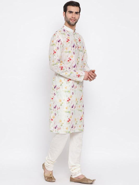 Men's Cream Silk Blend Straight Sherwani Set