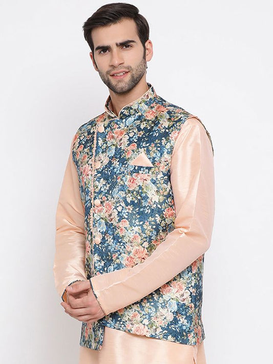 Men's Peach Silk Blend Straight Nehru Jacket