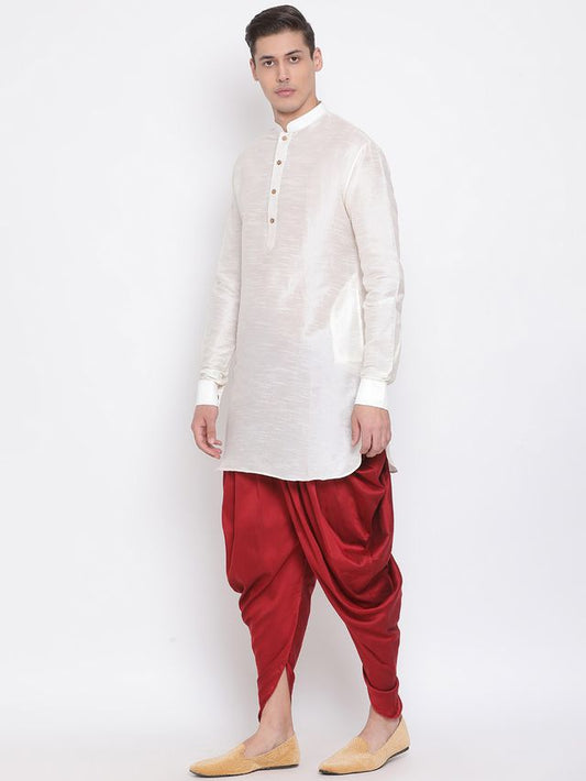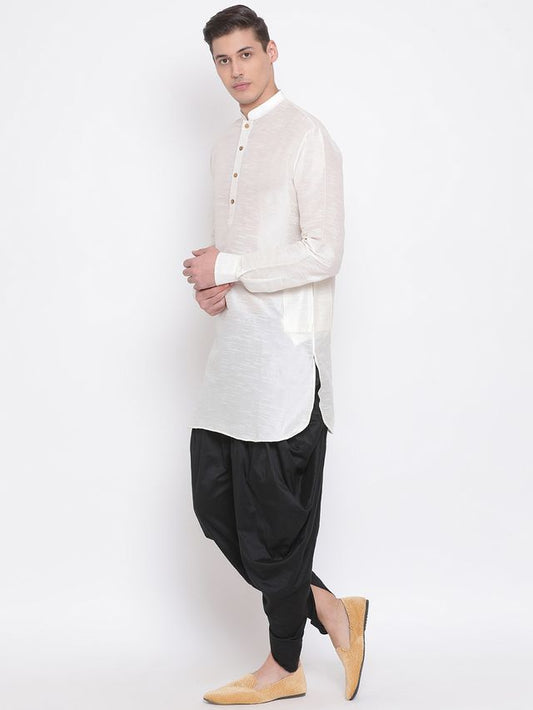Men's Cream Silk Blend Pathani Kurta and Dhoti Set