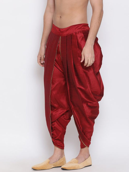 Men's Maroon Silk Blend Regular Dhoti