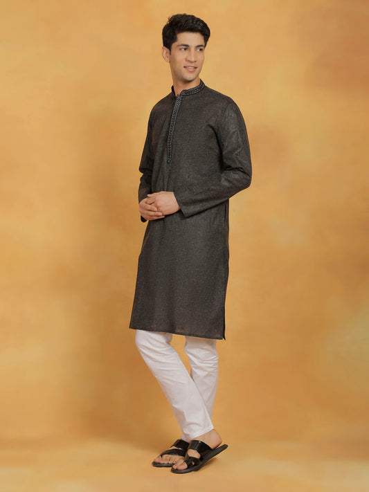Men's Black Viscose Straight Jacket Kurta And Pyjama Set.