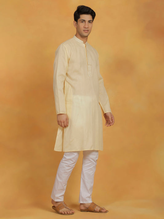 Men's Cream Cotton Straight Kurta Pyjama Set