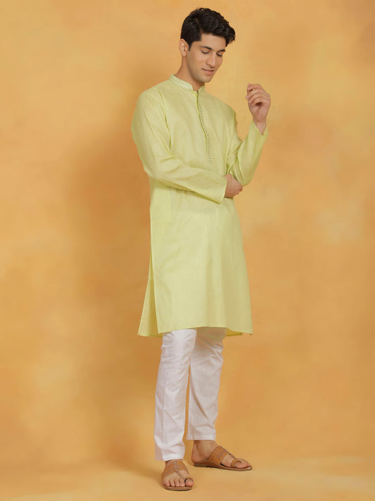 Men's Mint Green Cotton Straight Kurta Pyjama Set