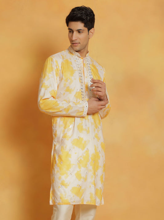 Men's Yellow Chanderi Straight Kurta And Pyjama Set