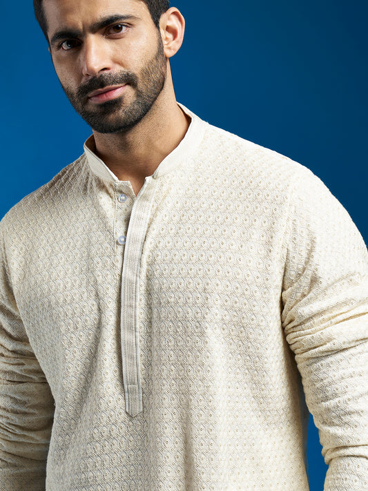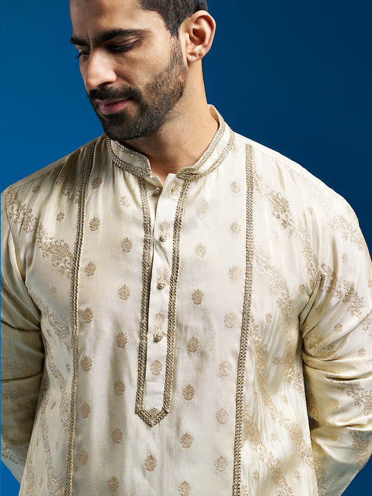 Men's Cream Georgette Straight Kurta And Pyjama Set