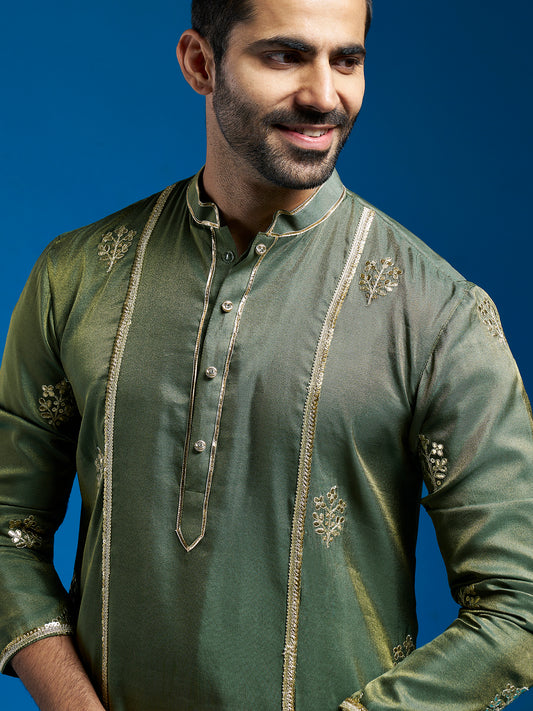 Men's Tissue Banarasi Tissue Straight Kurta And Patiala Set