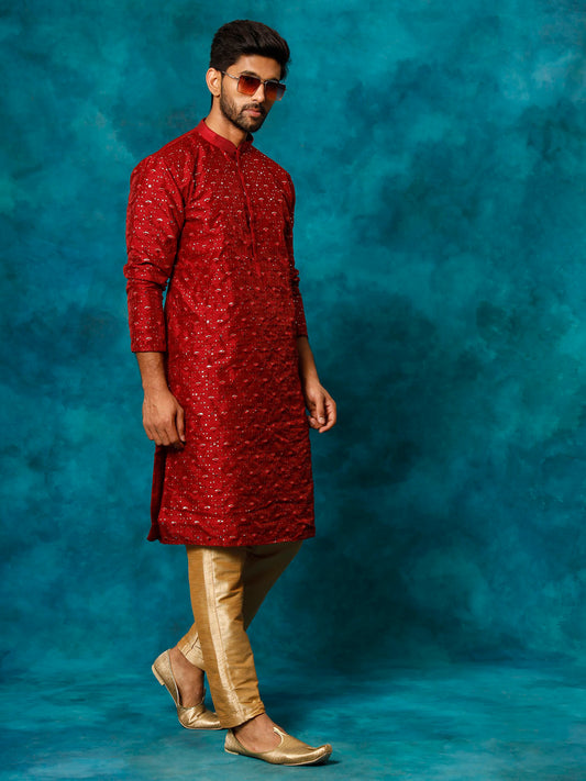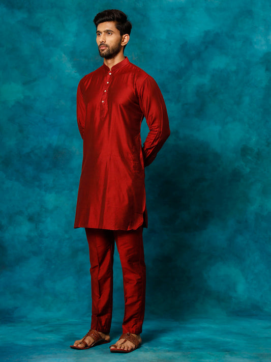 Men's Maroon Silk Blend Straight Kurta Pyjama Set