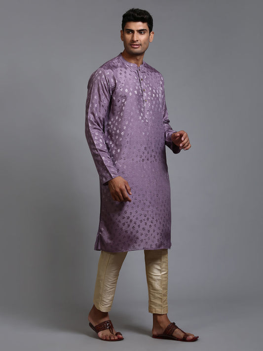 Men's Purple Silk Blend Straight Kurta Pyjama Set
