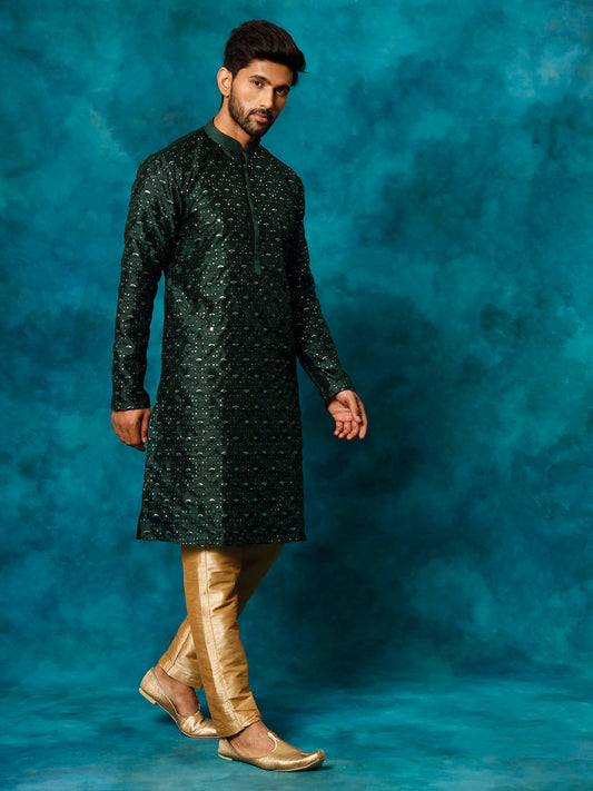 Men's Green Silk Blend Straight Kurta Pyjama Set