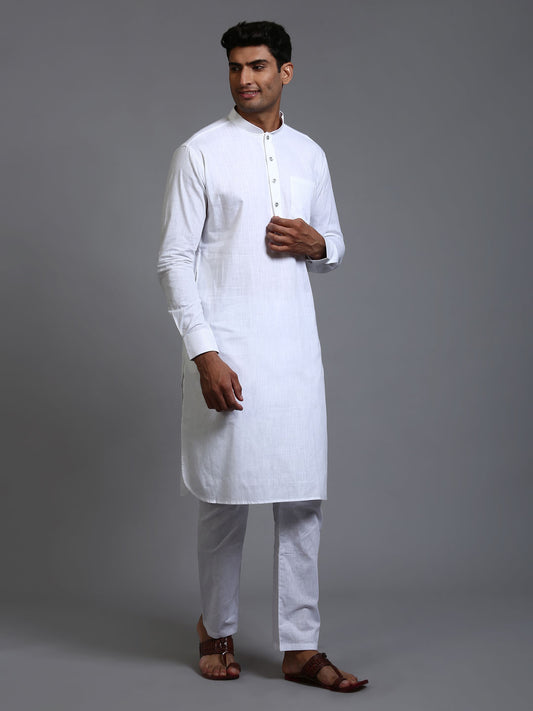 Men's White Cotton Blend Straight Kurta Pyjama Set