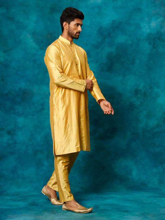 Men's Gold Silk Blend Straight Jacket Kurta and Pyjama Set