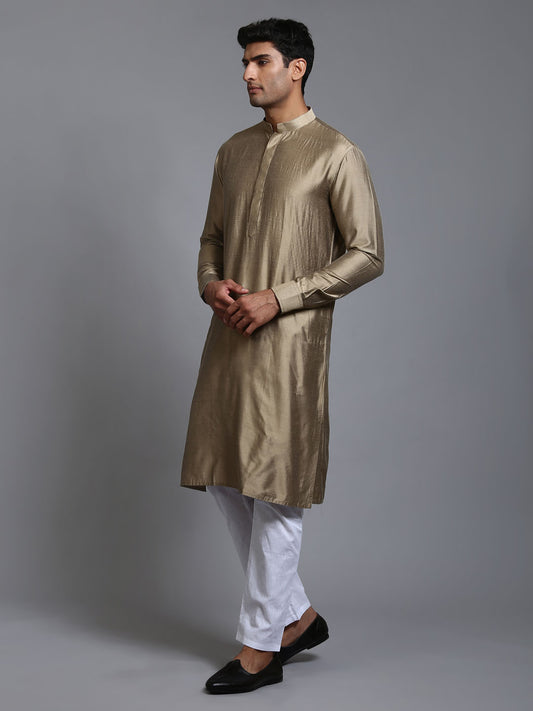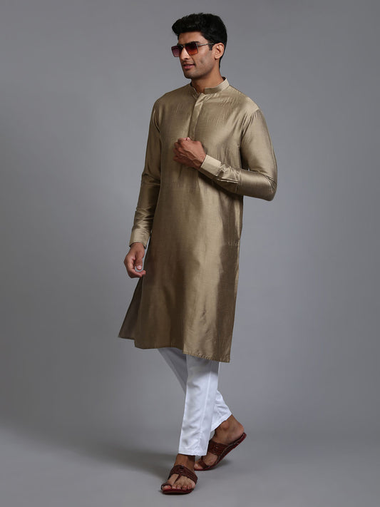 Men's Rose Gold Silk Blend Straight Jacket Kurta and Dhoti Set