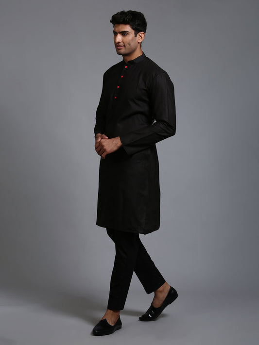 Men's Black Cotton Blend Straight Kurta Pyjama Set