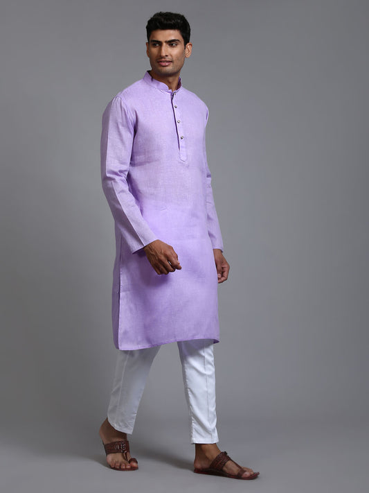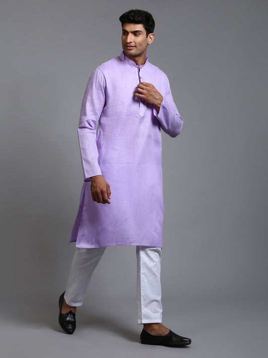 Men's Purple Cotton Straight Kurta Pyjama Set