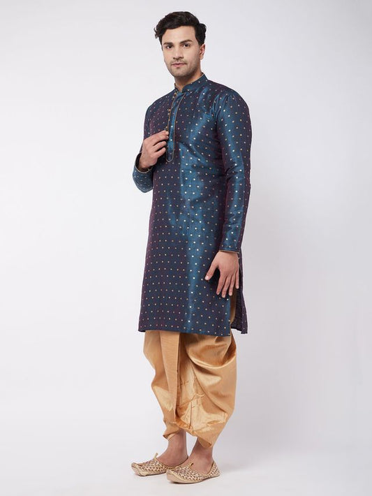 Men's Blue Silk Blend Straight Kurta and Dhoti Set