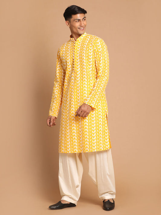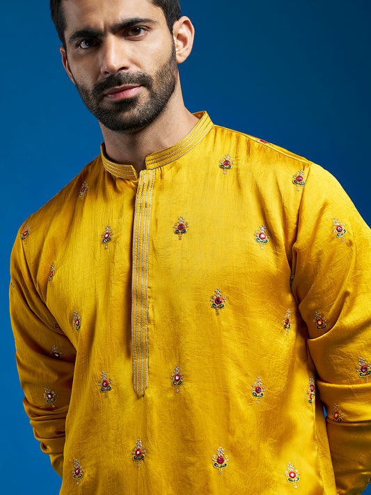 Men's Mustard Silk Blend Straight Kurta And Pyjama Set
