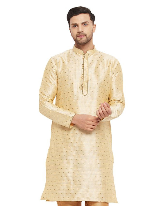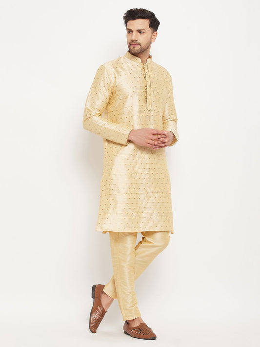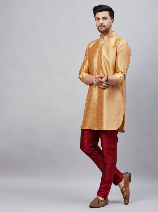 Men's Gold Silk Blend Straight Kurta Pyjama Set