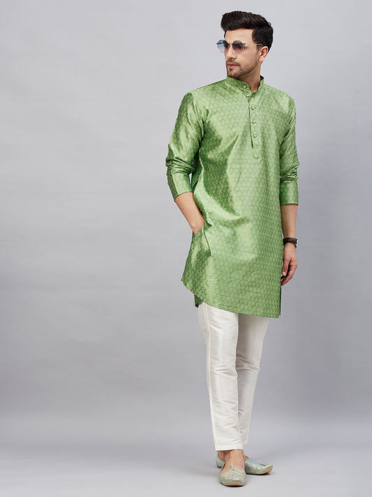Men's Mint Green Silk Blend Straight Kurta Pyjama Set