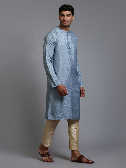 Men's Grey Silk Blend Straight Kurta Pyjama Set