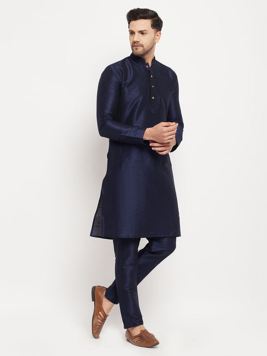 Men's Navy Blue Silk Blend Regular Kurta Pyjama Set