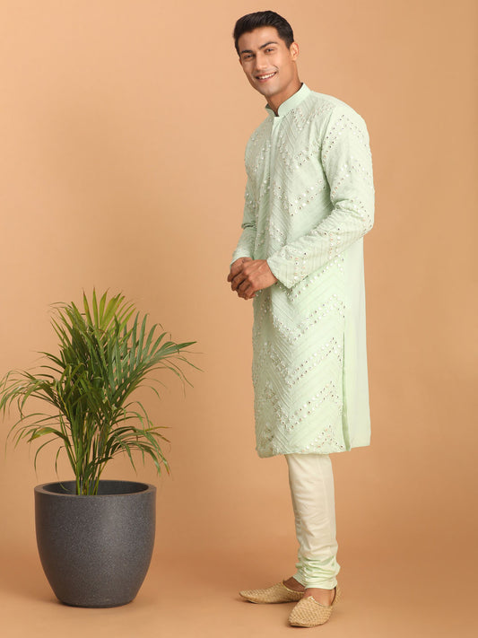 Men's Mint Green Georgette Straight Kurta Pyjama Set