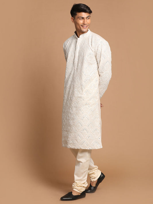 Men's Multi color Base Cream Cotton blend Straight Kurta Pyjama Set