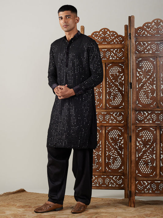 Men's Black Georgette Regular Kurta and Patiala Set