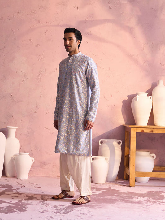 Men's Pastel Blue Georgette Straight Kurta and Patiala Set